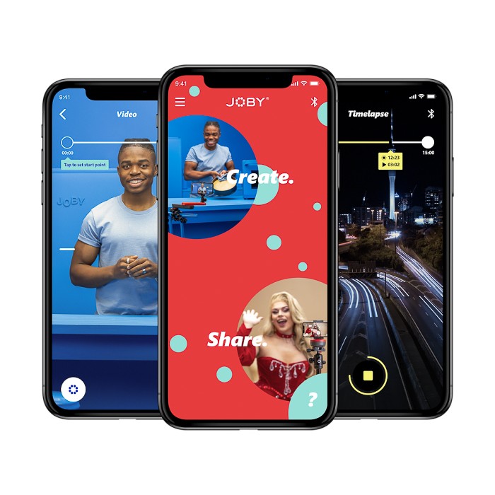 Dank seiner robusten Verarbeitung und einer Nutzlast von 650 g funktioniert diese Halterung problemlos mit Smartphones, auf denen die Joby Motion-App für iOS oder Android installiert ist.