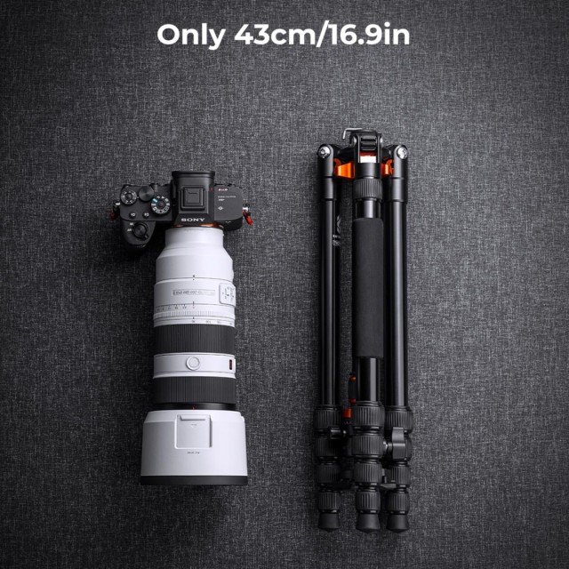 Hochwertige militärische Magnesium-Aluminium-Legierung, Korrosionsbeständigkeit; Stativ mit Kugelkopf wiegt nur 3,30 lbs, es kann 180°reflexed und gefaltet werden, um 16,5 '', einfach, um es in einem Rucksack oder Koffer zu setzen, wenn Reisen.