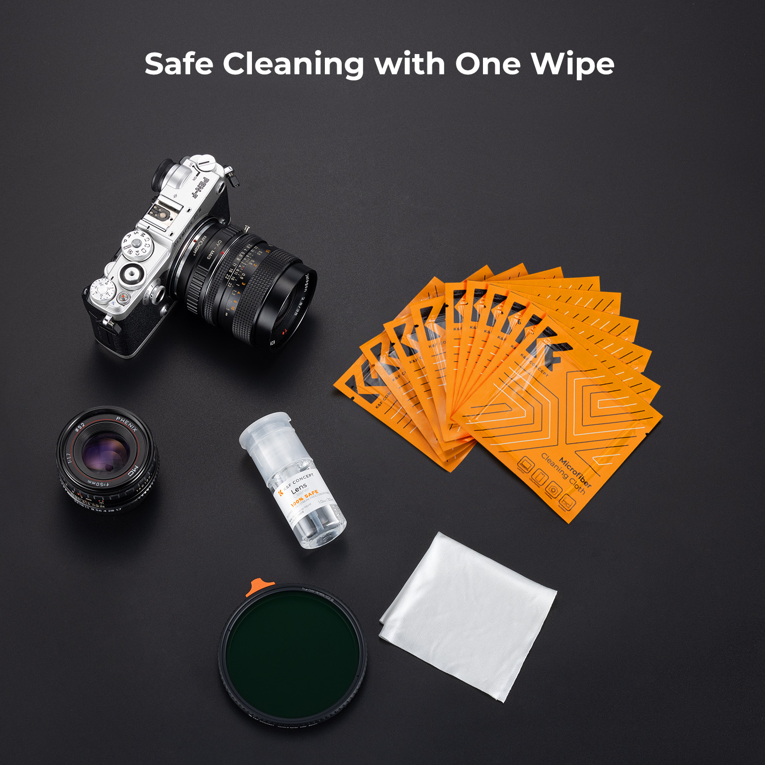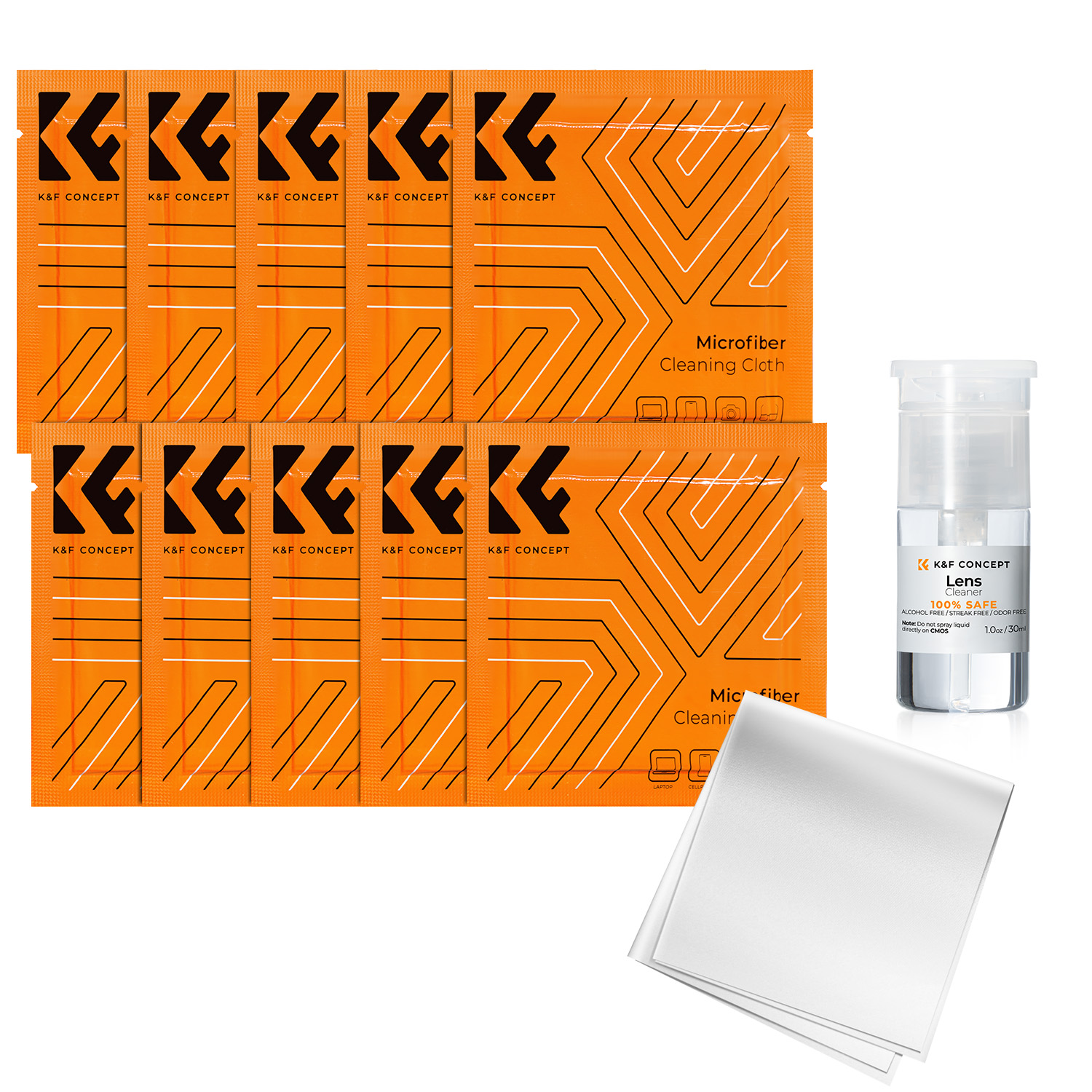 K&F 11 in 1 Cleaning kit, 10*10cm While Vacuum Cleaning Cloth*10 + 30ml Cleaning Liquid