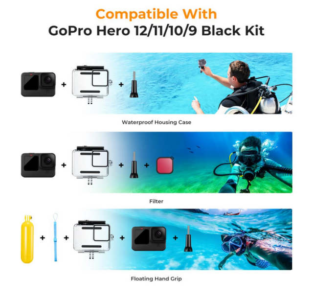 Das K&F 21 in 1 Waterproof Kit wurde speziell für die GoPro Hero 12, 11, 10 und 9 Black entwickelt und bietet umfassenden Schutz und vielseitiges Zubehör für Unterwasserabenteuer. Dieses Kit enthält ein wasserdichtes Gehäuse, das für Tiefen bis zu 147 Fuß geeignet ist, einen Satz Tauchfilter zur Farbkorrektur und einen schwimmenden Handgriff für bessere Kontrolle und zur Vermeidung von Verlust. Es sorgt dafür, dass Ihre Action-Kamera beim Schwimmen, Surfen, Tauchen, Schnorcheln und anderen Wasseraktivitäten sicher und funktionsfähig bleibt.