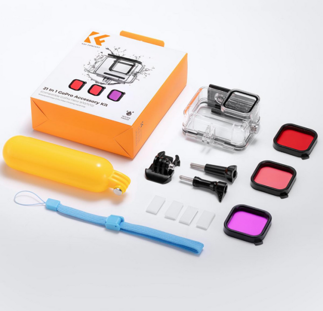 Das K&F 21 in 1 Waterproof Kit wurde speziell für die GoPro Hero 12, 11, 10 und 9 Black entwickelt und bietet umfassenden Schutz und vielseitiges Zubehör für Unterwasserabenteuer. Dieses Kit enthält ein wasserdichtes Gehäuse, das für Tiefen bis zu 147 Fuß geeignet ist, einen Satz Tauchfilter zur Farbkorrektur und einen schwimmenden Handgriff für bessere…