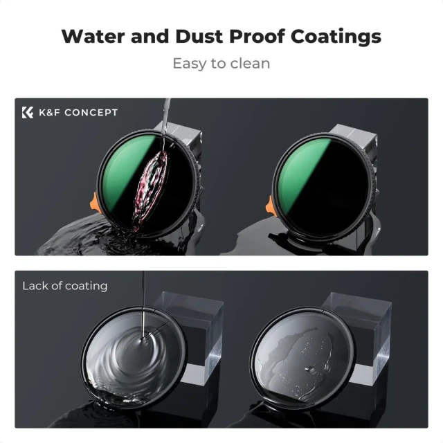 - * 【Wasserdicht und kratzfest】Der K&F Concept ND-Filter ist auf beiden Seiten mit einer mehrschichtigen hydrophoben, ölabweisenden und kratzfesten Beschichtung versehen, sodass er vollständig geschützt und perfekt für den Einsatz unter schwierigen Bedingungen geeignet ist.