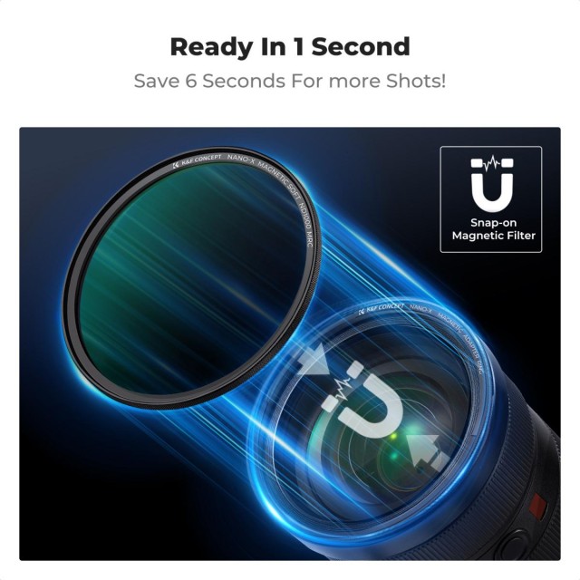 Der magnetische Adapterring ermöglicht einen sofortigen Filterwechsel in nur einer Sekunde und macht das umständliche Aufschrauben von Filtern überflüssig.