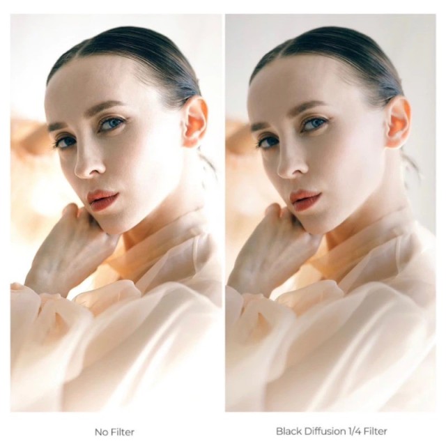 Der Filter hat eine Grundbeschichtung auf dem optischen Glas. Mit vielen Objektiven und Kameras lassen sich heutzutage sehr scharfe Bilder, Filme und Fotos aufnehmen, die in vielen Fällen zu scharf sind. Diffusionsfilter wurden entwickelt, um die Auswirkungen übermäßiger Schärfe zu reduzieren, den digitalen Look von Fotos und Videos zu beseitigen und sie filmischer und natürlicher aussehen zu lassen. Darüber hinaus werden mit dem Diffusionsfilter Schwarz alle Unvollkommenheiten von fotografierten und gefilmten Objekten, insbesondere in der Porträtfotografie, wie Hauttöne, Falten, Poren usw., weich und glatt.