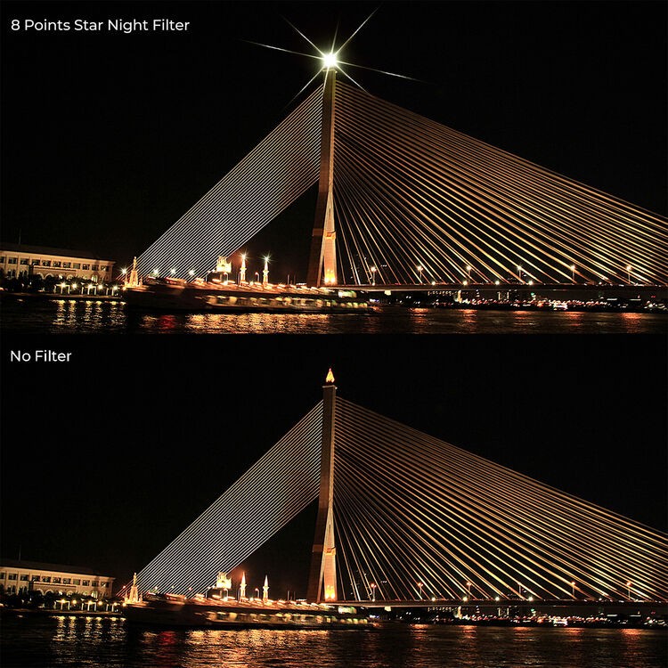 Verleihen Sie Ihren Nachtlandschaften und Porträts mit dem K&F Concept 55 mm Nano-C Series Variable Star 4-8 Filter einen kinoreifen Glanz. Dieser innovative Filter verwandelt helle Punktlichter – wie Straßenlaternen, Sterne oder Reflexionen – mit einer einfachen Drehung seines robusten Metallrahmens in atemberaubende 4- oder 8-zackige Sterneneffekte. Er besteht aus hochwertigem, mehrfach beschichtetem optischem Glas mit einer schützenden grünen Beschichtung und minimiert Streulicht und Reflexionen, während die Bildschärfe und Farbtreue erhalten bleiben. Das variable Design ermöglicht einen nahtlosen Wechsel zwischen dezenten 4-Punkt-Sternen für natürliche Eleganz und dramatischen 8-Punkt-Sternen für beeindruckende Bilder, perfekt für Astrofotografie, nächtliche Stadtansichten oder kreative Bokeh-Effekte. Ultraflach und leicht, passt er mühelos auf 55-mm-Objektive ohne Vignettierung, selbst bei Weitwinkelobjektiven. Verbessern Sie Ihre Kompositionen mit professioneller Lichtstreuung, die einfach zu steuern und langlebig ist.