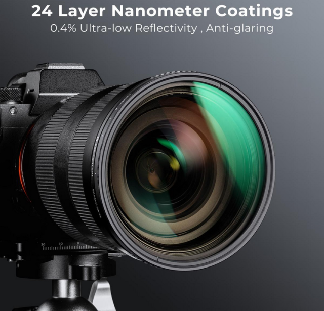 Der variable ND-Filter der K&F 58MM D-Serie bietet eine vielseitige Lichtsteuerung von ND2 bis ND32, perfekt für Langzeitbelichtungen und Bewegungsunschärfe unter verschiedenen Lichtverhältnissen. Mit 24 Schichten nanobeschichtetem optischem Glas minimiert dieser Filter Reflexionen und Blendungen und bewahrt gleichzeitig die Farbbalance.