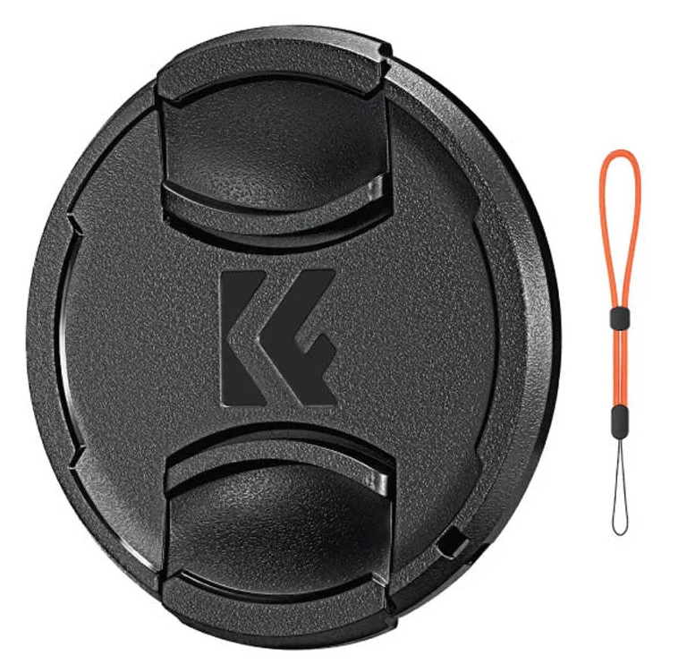 K&F 58MM Lens Cap printed with KF logo with anti-lost string, individually packaged in OPP bag