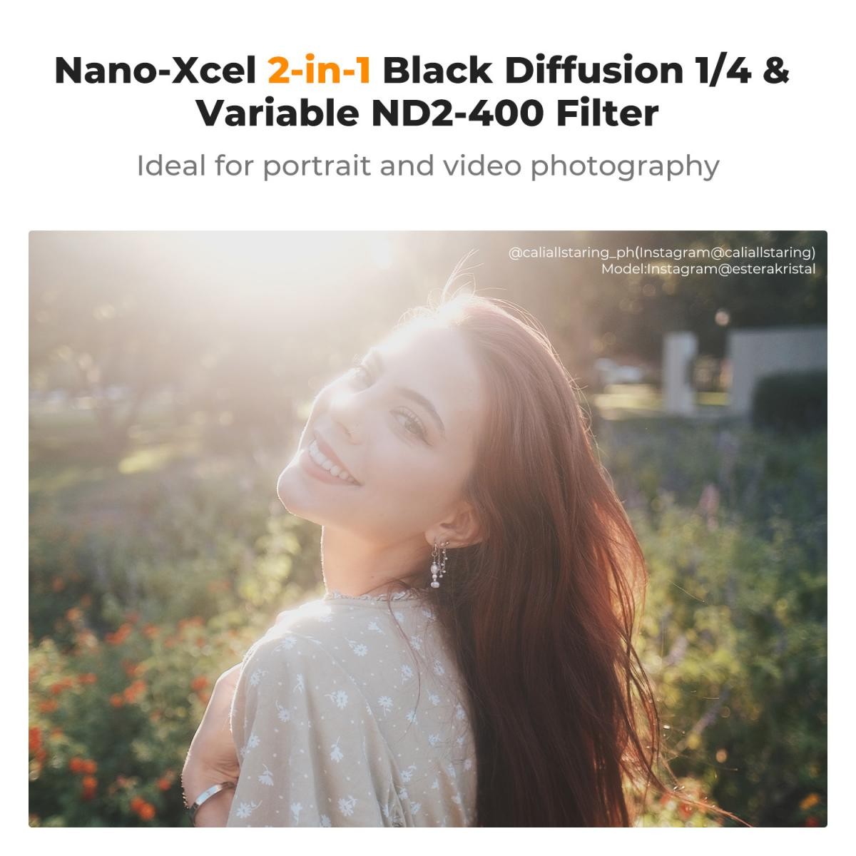 Der K&F Concept 58 mm Adjustable Black Mist 1/4 & Variable ND2–ND400 Filter kombiniert filmische Diffusion mit präziser Belichtungssteuerung und bietet eine vielseitige 2-in-1-Lösung für Fotografen und Videografen, die traumhafte Highlights und eine sanfte Lichtanpassung suchen.
