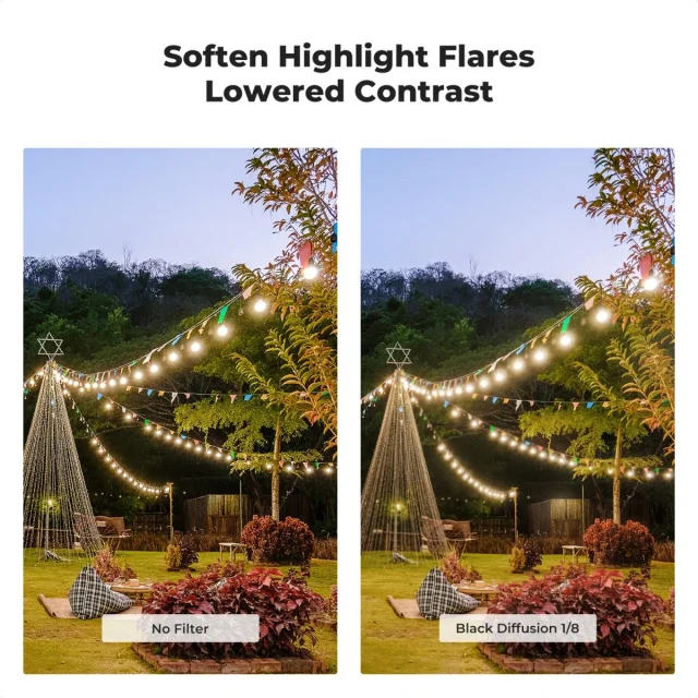 • * 【Importiertes AGC-Optikglas】Schwarzer Diffusionsfilter 1/8 Hergestellt aus hochpräzisem AGC-Optikglas aus Japan, mehrschichtige Beschichtung für zusätzliche Transparenz mit 87 % Lichtdurchlässigkeit, reduziert effektiv Reflexionen vom Filter selbst.