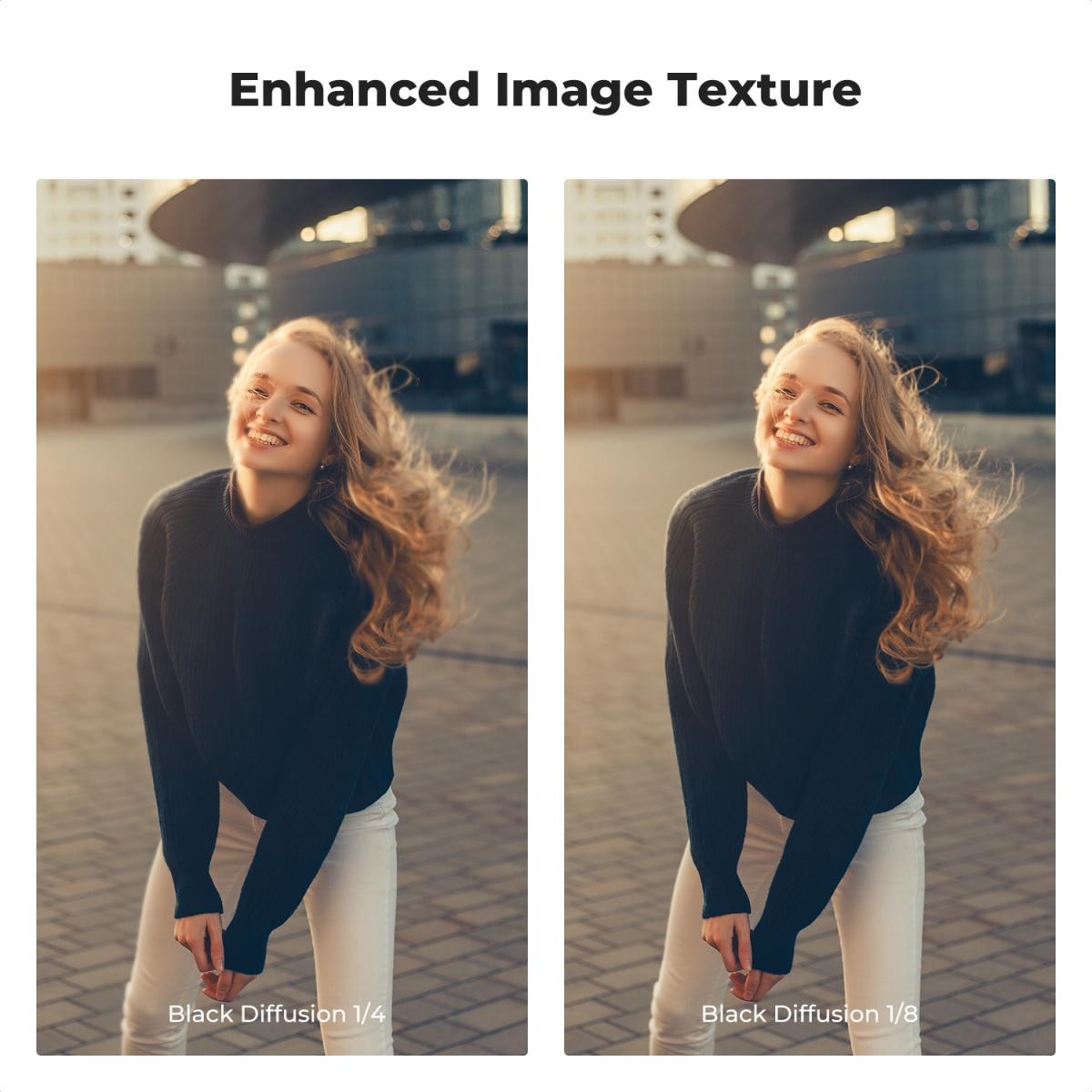 Mit einer Diffusionsstärke von 1/4 und 1/8 bietet das Kit Fotografen und Filmemachern die Flexibilität, zwischen subtiler Weichheit und einem ausgeprägteren filmischen Glanz zu wählen. Dieses mit allen 58-mm-Objektivgewinden kompatible Doppelfilterset ist ein unverzichtbares kreatives Werkzeug, um direkt in der Kamera einen traumhaften, filmähnlichen visuellen Stil zu erzielen.