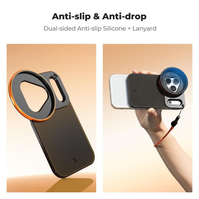Verbessern Sie Ihre iPhone 17 Pro Max-Fotografie mit dem K&F 58 mm einschraubbaren Magsafe doppelseitigen Magnetfilterhalter. Er wurde speziell für das iPhone 17 Pro Max-Objektivmodul entwickelt und verfügt über einen dreieckigen Objektivausschnitt und einen rechteckigen Deko-Ausschnitt, die perfekt auf das Gehäuse abgestimmt sind. Große Blitzöffnungen und Antennenaussparungen verhindern Lichtlecks und Signalstörungen und sorgen dafür, dass die Leistung Ihrer Kamera und Ihres Blitzes nicht beeinträchtigt wird.