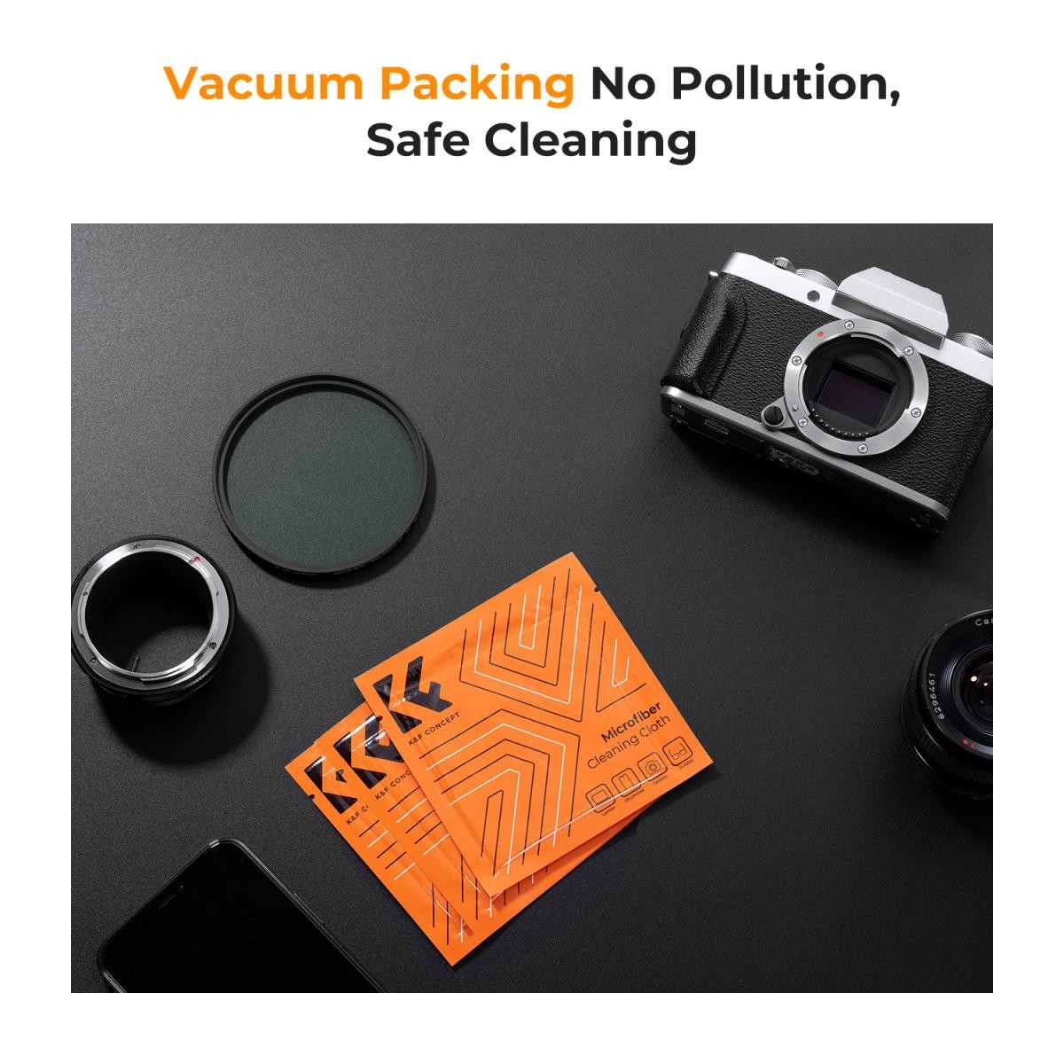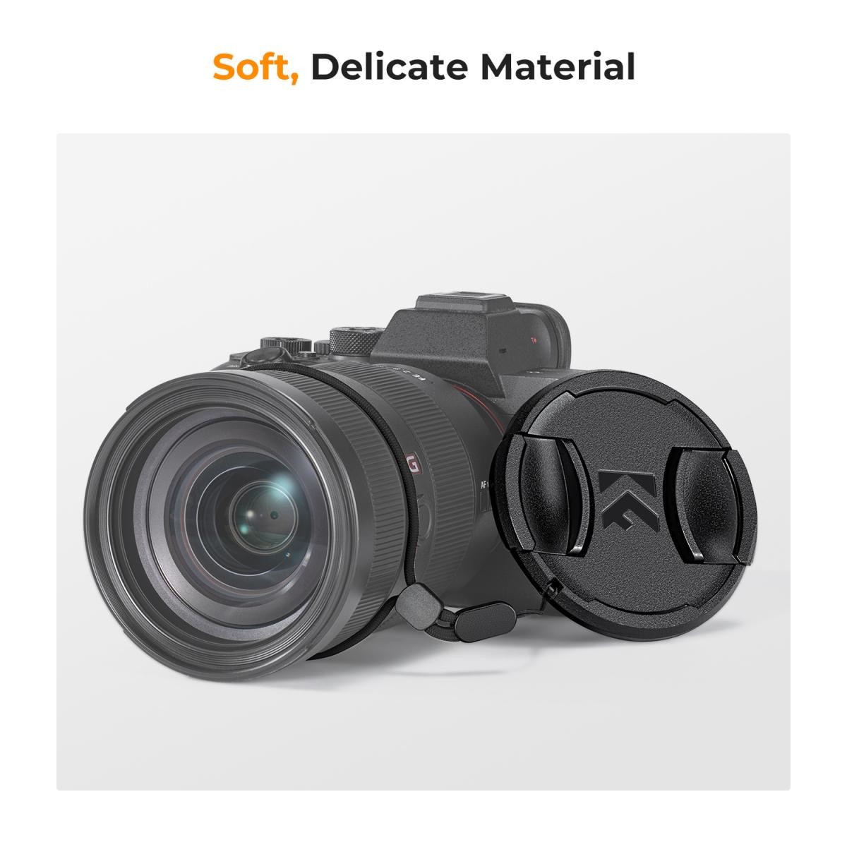 Das K&F 58 mm Snap-On Center Pinch Lens Cap 7-in-1 Kit bietet zuverlässigen Objektivschutz mit strapazierfähigen Center-Pinch-Kappen, Anti-Verlust-Befestigungsbändern und vakuumverpackten Mikrofaser-Reinigungstüchern, die mit den meisten Kameramarken kompatibel sind.