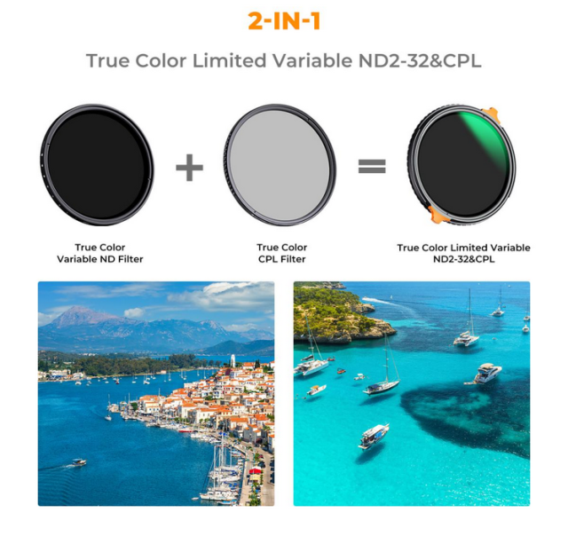 Der K&F 62mm Multifunktionsfilter True Color ND2~32+CPL vereint die Vorteile von ND- und CPL-Filtern in einem einzigen Gerät. Mit diesem Filter können Sie den Lichteinfall kontrollieren, Reflexionen von nicht-metallischen Oberflächen reduzieren und Farbe und Kontrast in Ihren Aufnahmen verbessern. Er verfügt über einen fortschrittlichen selbstsichernden Rahmen, der sich stufenlos zwischen 1 und 5 Stufen (ND2-32) drehen lässt, um unerwünschte Kreuzmuster zu vermeiden. Der aus importiertem optischem AGC-Glas mit 28-facher Beschichtung hergestellte Filter ist wasserdicht, kratzfest und liefert hochauflösende Bilder mit echter Farbgenauigkeit.