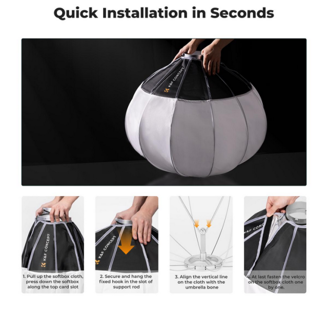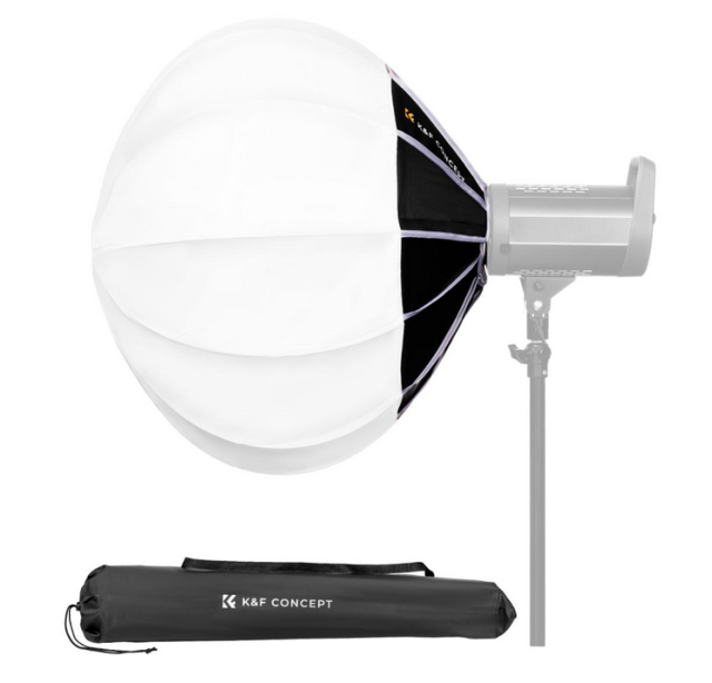 Erzielen Sie eine gleichmäßige, weiche 360°-Beleuchtung, die ideal für den Einsatz im Studio ist, mit der K&F 65CM Lantern Soft Light Box. Perfekt für Fotografen und Filmemacher, die effiziente und tragbare Beleuchtungslösungen benötigen.