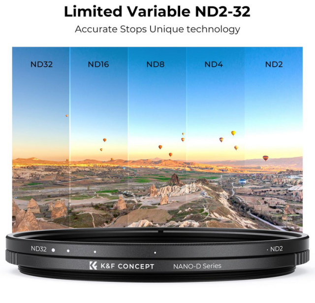 Der variable ND-Filter der K&F 67MM D-Serie bietet eine einstellbare Lichtreduzierung von ND2 bis ND32, ideal für Langzeitbelichtungen und Bewegungsunschärfe bei unterschiedlichen Lichtverhältnissen. Mit 24 Schichten nanobeschichtetem optischem Glas reduziert dieser Filter Reflexionen und Blendeffekte, während die Farbgenauigkeit erhalten bleibt.
