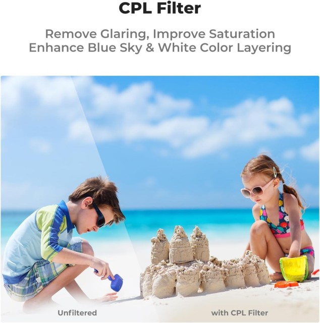 - 【UV/CPL Filter】Der UV-Filter verhindert den UV-Strahleneffekt für das Bild und schützt das Osmo Pocket 3 Objektiv vor Staub und Kratzern. CPL-Filter kann die Reflexion von nicht-metallischen Oberflächen wie Glas und Wasser entfernen und verbessert die Farbsättigung und den Kontrast für lebendige und fesselnde Landschaftsbilder.