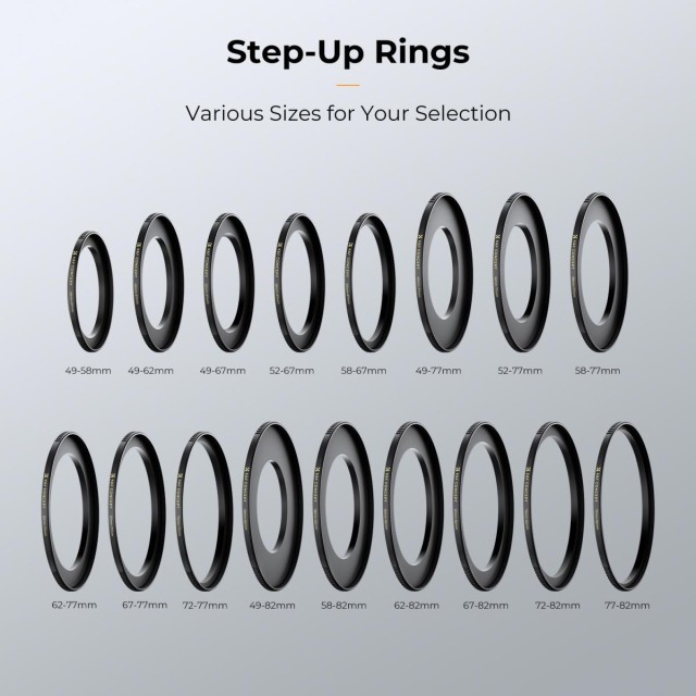 * 【Perfekte Passform】 K&F Concept Stufenringe sorgen für eine sichere, präzise Verbindung zwischen Ihrem Kameraobjektiv und den Filtern, verhindern Lichtverluste und erhalten die Bildqualität für schärfere Fotos und Videos mit stabilem, flachem Fokus.
