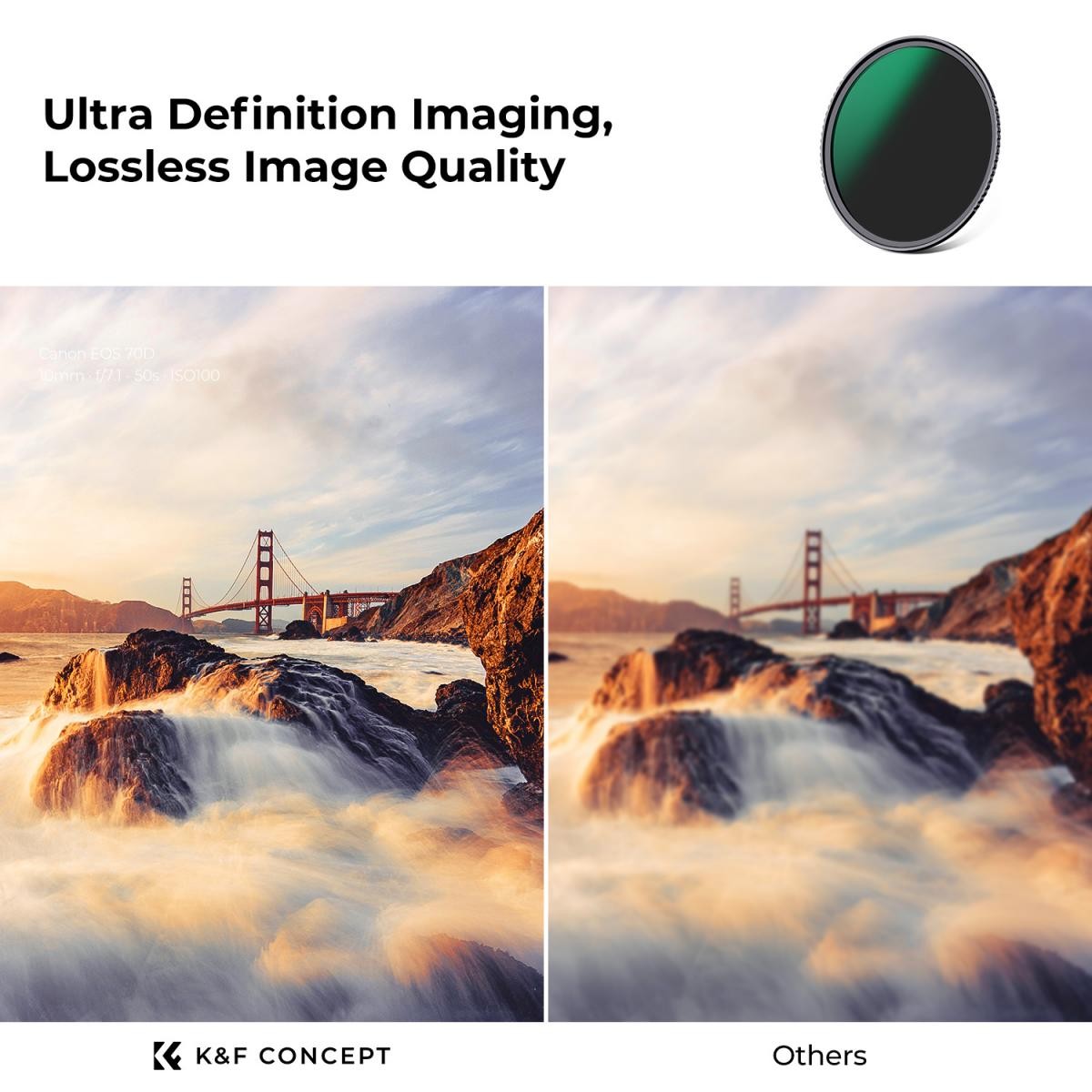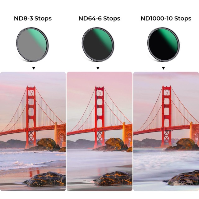 Das professionelle 3-teilige ND-Filter-Set K&F 72 mm umfasst ND8-, ND64- und ND1000-Filter aus hochwertigem japanischem optischem Glas mit 24-facher Nanobeschichtung, die eine hervorragende Farbneutralität, reduzierte Reflexionen und Vielseitigkeit bei Langzeitbelichtungen bieten – komplett mit einer Schutztasche und drei Reinigungstüchern für den mobilen Einsatz.