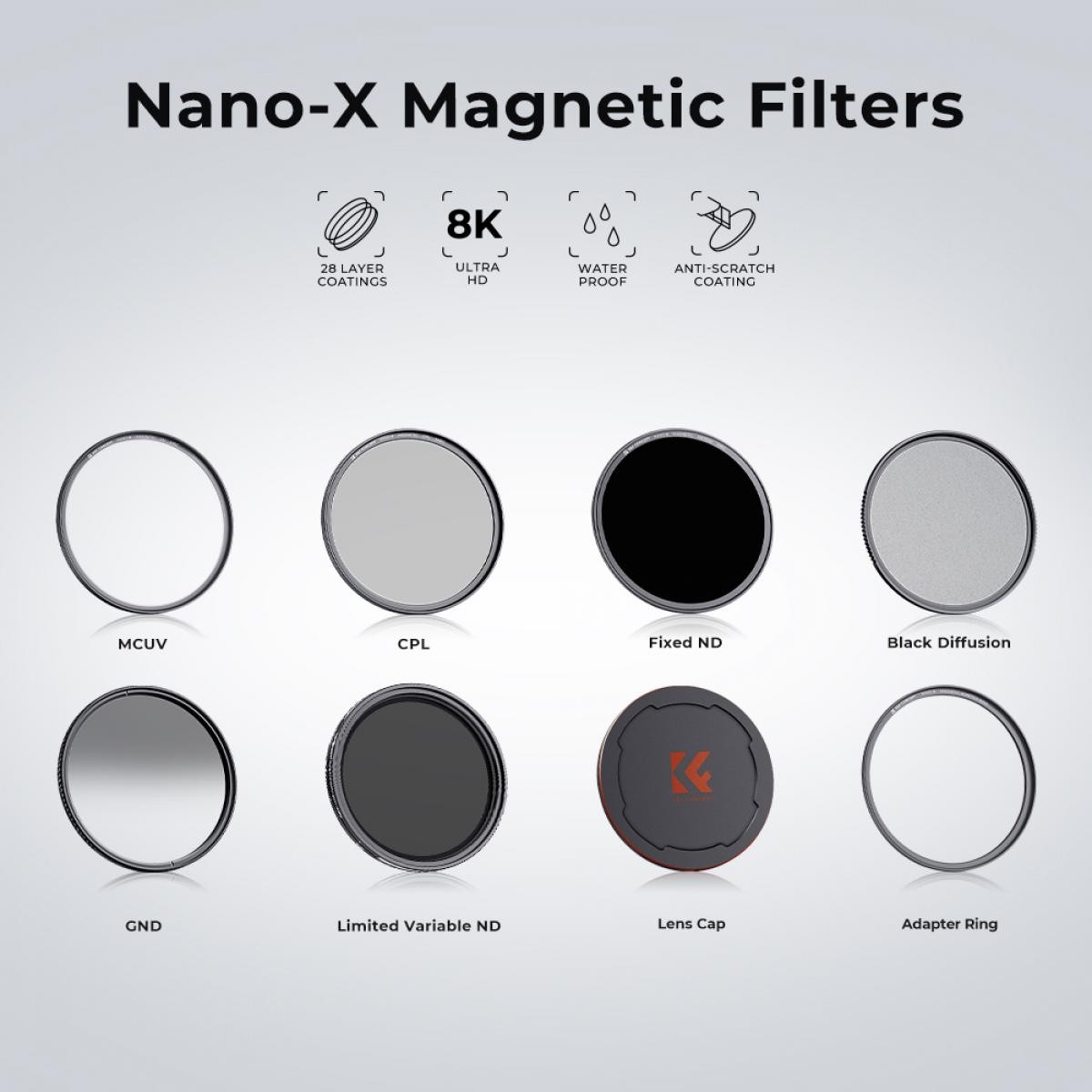 Der magnetische Filter K&F 72MM NANO-X CPL verbessert die Bildschärfe und Farbsättigung und reduziert gleichzeitig Reflexionen. Er lässt sich in nur einer Sekunde magnetisch anbringen, verfügt über einen ultradünnen CNC-Aluminiumrahmen und eine strapazierfähige, wasserdichte, kratzfeste Optik mit grüner Beschichtung.