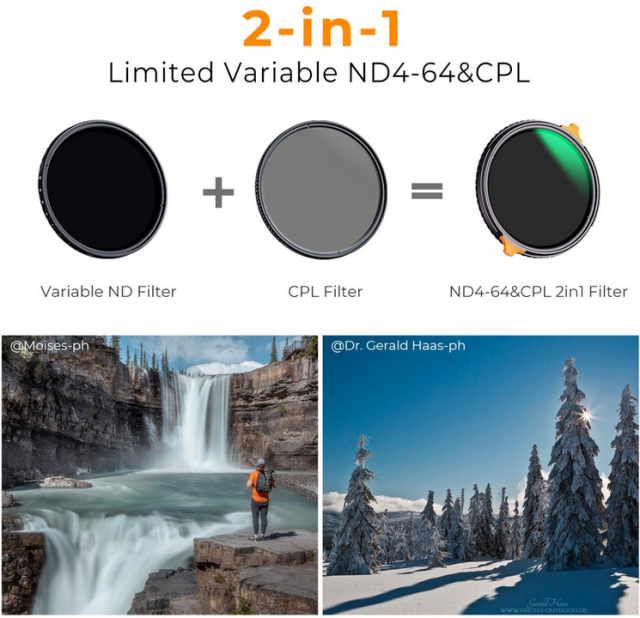 Der K&F 72mm ND4-ND64 Variable ND- und CPL 2-in-1-Filter ist ein unverzichtbares Werkzeug für Fotografen und Videofilmer, die Belichtungssteuerung und Blendreduzierung in einem vielseitigen Filter suchen. Mit variablen ND-Funktionen von 2 bis 6 Blendenstufen eignet sich dieser Filter sowohl für bewölkte als auch für helle Bedingungen und gibt Ihnen die Flexibilität, lange Belichtungen aufzunehmen oder Licht zu reduzieren, um Überbelichtung zu vermeiden. Der integrierte CPL-Filter (Circular Polarizing Filter) verbessert Ihre Aufnahmen zusätzlich, indem er Reflexionen von nicht-metallischen Oberflächen eliminiert, die Farbsättigung verbessert und den Kontrast erhöht.