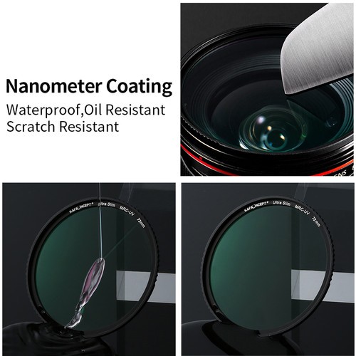 Der K&F Concept 72 mm XU10 Ultra Slim B270 MCUV-Filter ist ein hochwertiger klarer UV-Schutzfilter mit L380 UV-Sperre, 18-lagiger multiresistenter Beschichtung und Nanoresistenztechnologie. Sein ultraschlanker Aluminiumrahmen minimiert Vignettierung und sorgt gleichzeitig für Full-HD-Bildschärfe und zuverlässigen Objektivschutz.