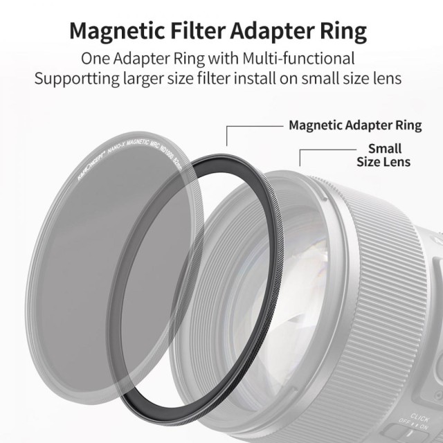 Magnetischer Aufsteckring für die Montage von Filtern mit 82 mm Durchmesser auf Objektiven mit 77 mm Durchmesser. Gilt nur für magnetische Filter.