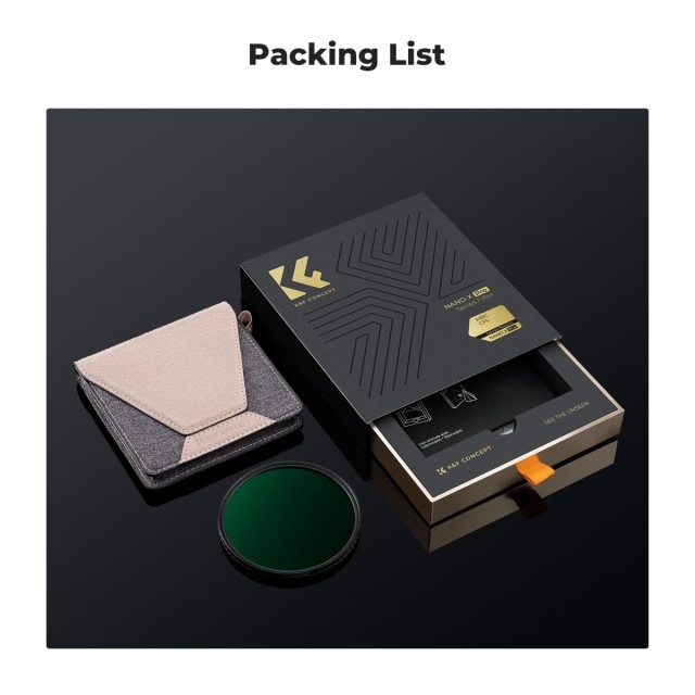 Der Rahmen besteht aus Messing und hat ein ultradünnes Design. Die CNC-integrierte Formgebung bietet sowohl Härte als auch Flexibilität, eine reibungslose und dauerhafte Installation, eine Bearbeitungsgenauigkeit im Bereich von 0,01 mm. Der Rahmen passt sich perfekt an das Objektiv an und ist fest mit diesem verbunden. Bei der Installation auf Weitwinkel- und Teleobjektiven tritt keine Vignettierung auf.