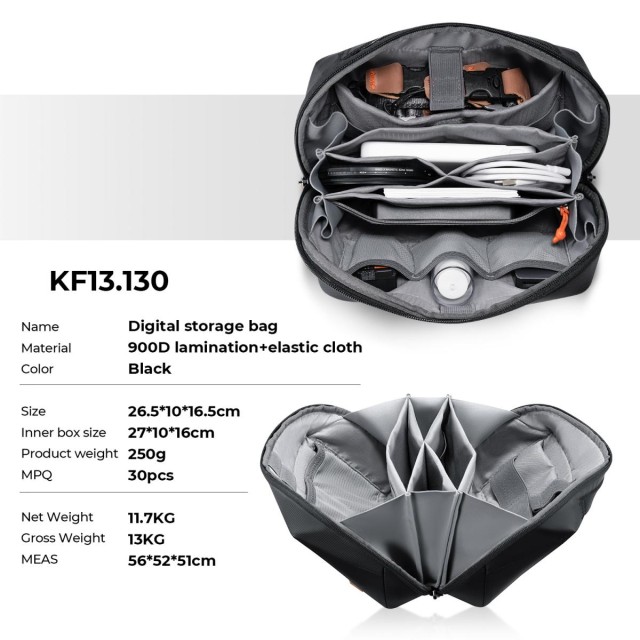 Leichtes Designkonzept mit detaillierter Innenraumaufteilung und bis zu 23 Ablagemöglichkeiten. Es ist ordentlich und übersichtlich, um Handys, Ladegeräte, Datenkabel, mobilen Strom, USB-Sticks, Mäuse, Autoschlüssel, Bankkarten, etc. zu speichern.