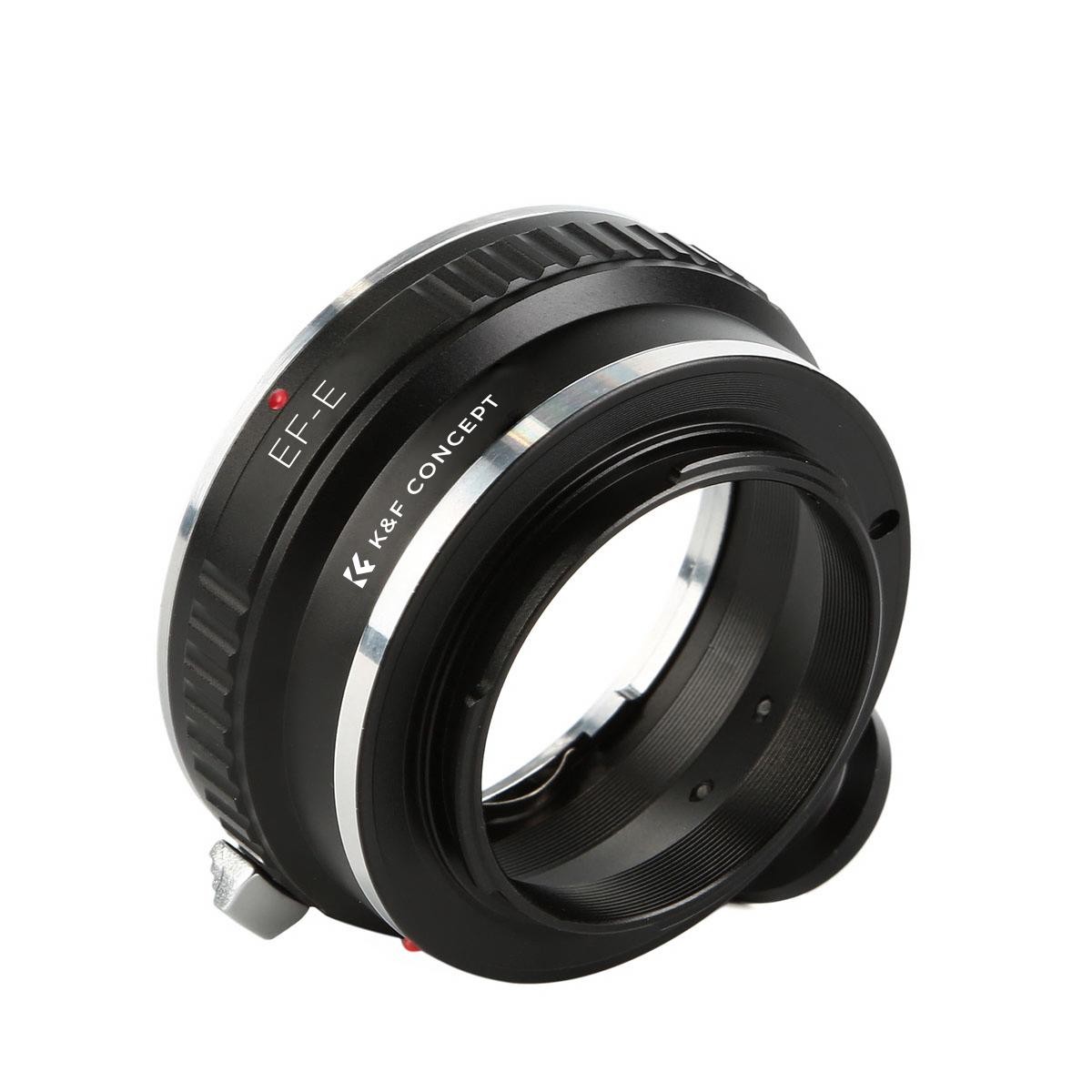 Der K&F Concept Canon EOS EF zu Sony E-Mount Adapter mit Stativhalterung ermöglicht die Montage von Canon EF-Objektiven auf Sony E-Mount-Kameras mit hoher Präzision, reibungsloser Bedienung, eloxierter Aluminiumkonstruktion und Unterstützung für Unendlichkeitsfokus.
