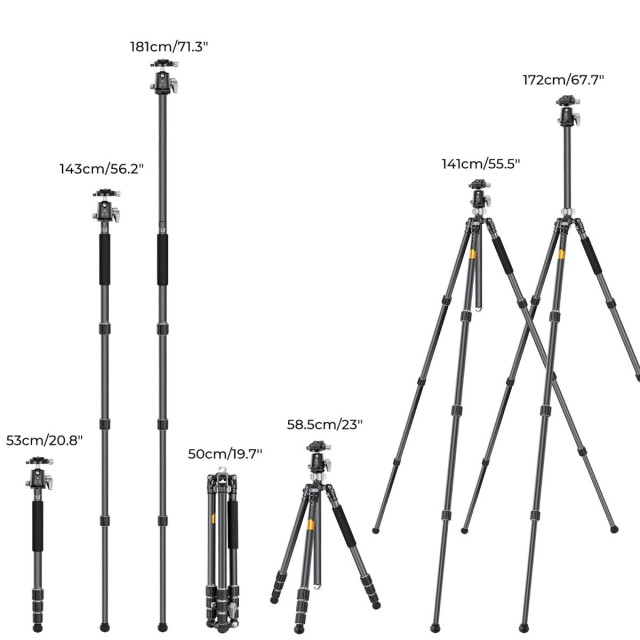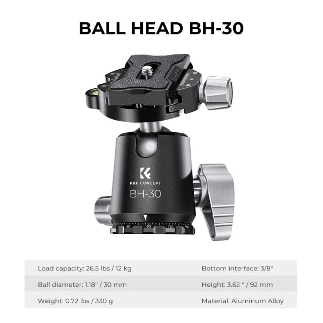 Das K&F Concept X254C4+BH-30 ist ein leichtes und dennoch leistungsstarkes Kohlefaser-Stativ mit einem CNC-gefrästen 30-mm-Metall-Kugelkopf, 12 kg Tragkraft und 360°-Schwenkbarkeit für präzise Foto- und Videoarbeiten.