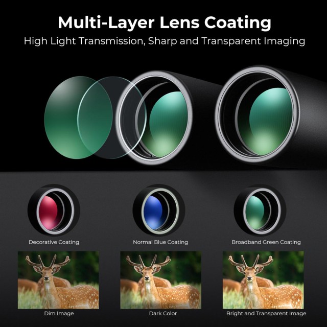 Das K&F Concept Continuous Zoom Fernglas mit einstellbarer 12X50 Vergrößerung bietet Flexibilität und ein größeres Sehfeld. Mit BAK4-Prismen und mehrfach vergüteten FMC-Linsen, die eine Lichtdurchlässigkeit von 99 % erreichen, liefern diese Ferngläser hochauflösende, farbgetreue Bilder. Das wasserdichte Design nach IP66, die Kompatibilität mit einem Stativ und die durchdachte Verarbeitung machen dieses Fernglas zu einem ausgezeichneten Weihnachtsgeschenk für Naturliebhaber und garantieren eine optimale Leistung, um wundervolle Momente festzuhalten.