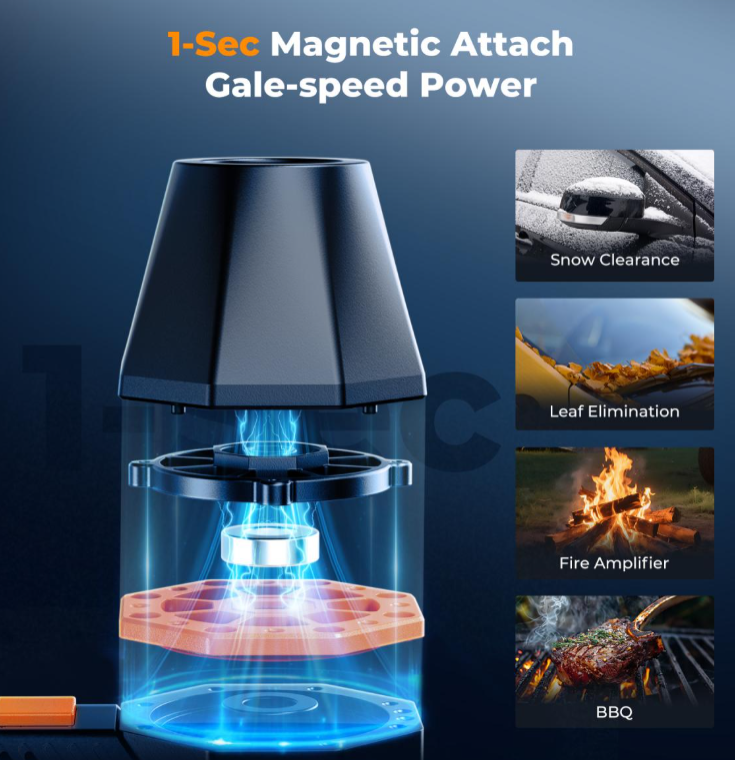 Der K&F Concept 2-in-1 Magnet-Druckluftreiniger ist ein wiederaufladbares Gerät mit bürstenlosem Motor (300.000 U/min, 150 m/s Windgeschwindigkeit, 250 G Kraft), das leistungsstarkes Blasen, Saugen und LED-Beleuchtung für die Reinigung von Computern, Tastaturen, Autos und Outdoor-Ausrüstung kombiniert. Mit magnetischen Düsenaufsätzen, 6 multifunktionalen Bürsten, einem 6.000-mAh-Akku (180 Minuten Laufzeit) und 3 Gangstufen bietet es vielseitige, überhitzungssichere Leistung in einem tragbaren Gehäuse.