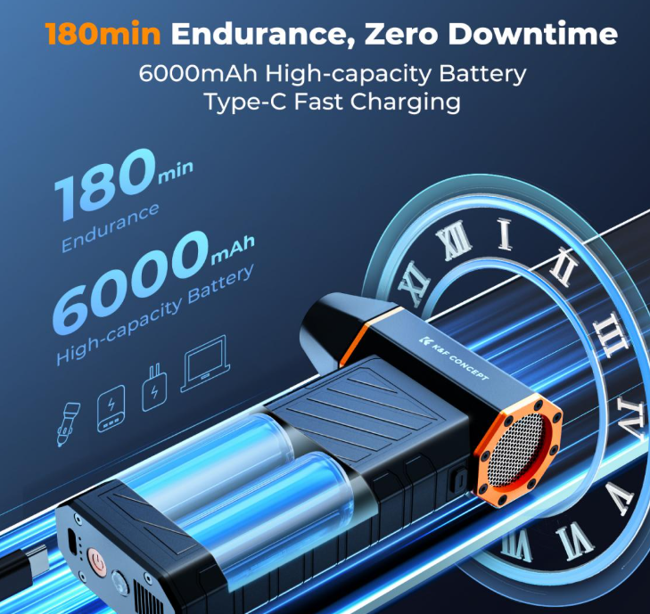 Der magnetische 2-in-1-Druckluftreiniger von K&F Concept revolutioniert die Reinigung mit seinem integrierten bürstenlosen Dreiphasenmotor, der 300.000 U/min für einen Luftstrom von 150 m/s und eine Kraft von 250 G erreicht und eine effiziente Staubentfernung von empfindlichen Elektronikgeräten wie Computern und Tastaturen, Fahrzeuginnenräumen, Haushaltsgeräten und Außenflächen wie Blättern oder Lagerfeueranzündern ermöglicht. Das magnetische Befestigungssystem ermöglicht einen sofortigen, positionsunabhängigen Düsenwechsel per Klickverschluss für gezielte Hochgeschwindigkeitsstöße, ergänzt durch 6 multifunktionale Bürsten zum Schrubben von Spalten oder Oberflächen. Das duale LED-System umfasst eine nach vorne gerichtete Koaxialleuchte zur Ausleuchtung von Schmutzpfaden bei schlechter Sicht und eine an der Basis montierte LED mit SOS-Blinklicht für Notfall-Signale. Durch nahtloses Umschalten zwischen Gebläse- und Saugmodus werden feine Partikel (bis zu 99 % Effizienz bei 0,3 µm) über einen hinteren Sauganschluss erfasst, wodurch eine vollständige Staubentfernung ohne Rückstände gewährleistet ist. Angetrieben von einem 6.000-mAh-Lithium-Ionen-Akku (3-fache Standardkapazität) unterstützt es eine Laufzeit von 180 Minuten über 3 einstellbare Gänge, wobei ein intelligenter Wärmeschutz den Hochgeschwindigkeitsmodus nach 10 Minuten automatisch abschaltet, um die Lebensdauer des Motors von 7 bis 10 Jahren zu gewährleisten. Dieses kompakte und über USB-C (5 V/2 A, vollständige Aufladung in 3 Stunden) wiederaufladbare Gerät mit einem Gewicht von 0,5 kg arbeitet leise (< 60 dB) und sicher (keine Gefahren durch komprimiertes Gas) und ist damit unverzichtbar für Technikbegeisterte, Fotografen und Abenteurer, die mit Präzision und Mobilität Unordnung im Innen- und Außenbereich beseitigen möchten.