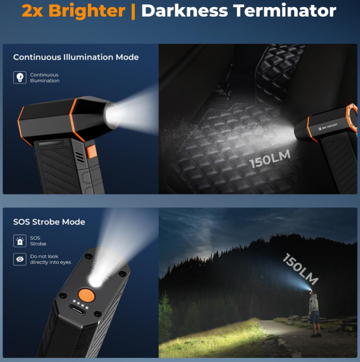 Der K&F Concept 2-in-1 Magnet-Druckluftreiniger ist ein wiederaufladbares Gerät mit bürstenlosem Motor (300.000 U/min, 150 m/s Windgeschwindigkeit, 250 G Kraft), das leistungsstarkes Blasen, Saugen und LED-Beleuchtung für die Reinigung von Computern, Tastaturen, Autos und Outdoor-Ausrüstung kombiniert. Mit magnetischen Düsenaufsätzen, 6 multifunktionalen…