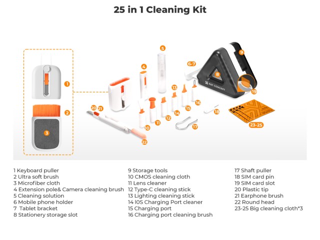 K&F Concept 25-in-1 Keyboard Cleaning Kit Laptop Cleaner - Multifunktionelles elektronisches Spezialzubehör Reinigungsset für Handy Tablet PC Kamera Tastatur Ohrstöpsel - Handy Tablet Halterung