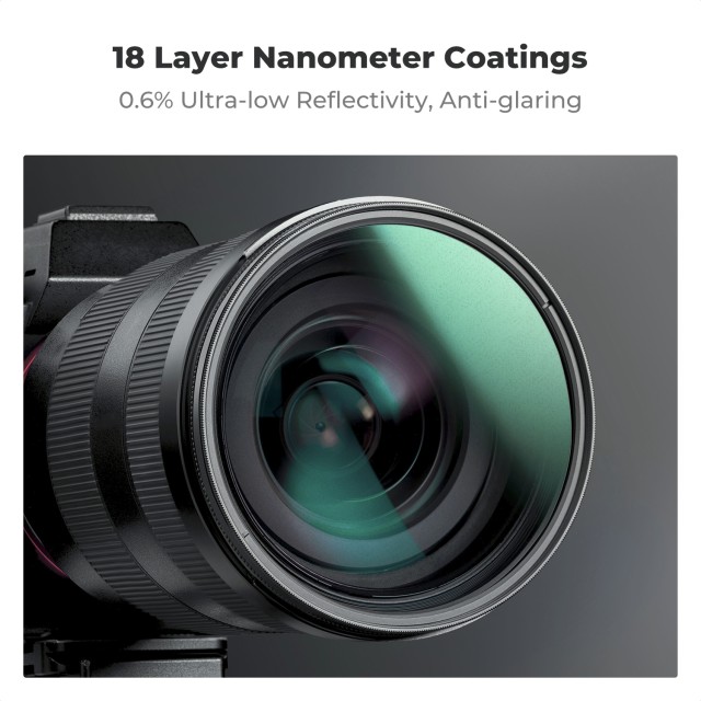 Das Black Mist-Element mildert harte Lichter, glättet Hauttöne und reduziert das Erscheinungsbild von Poren und Falten, wodurch ein natürlicher, filmähnlicher Look entsteht, der sich perfekt für Porträts, Mode und kinoreife Videos eignet. Gleichzeitig reduziert der integrierte CPL Reflexionen auf Glas-, Wasser- und Metalloberflächen und erhöht gleichzeitig die Farbsättigung und den Kontrast. Der Filter besteht aus hochwertigem AGC-Optikglas und verfügt über 18 Schichten einer verbesserten Antireflex-Nanobeschichtung für überragende Klarheit, reduzierte Blendung und zuverlässige Wetterbeständigkeit – einschließlich Schutz vor Beschlagen, Wasser und Kratzern. Der leichte, ultraschlanke Rahmen aus Flugzeugaluminium verhindert Vignettierung bei Weitwinkelobjektiven, und sein CNC-gefrästes Trapezmuster erhöht die Griffigkeit für einfaches Drehen und Anbringen. Die oxidierte, sandgestrahlte Oberfläche minimiert außerdem Streulicht und sorgt für optimale Bildqualität in jeder Aufnahmesituation.
