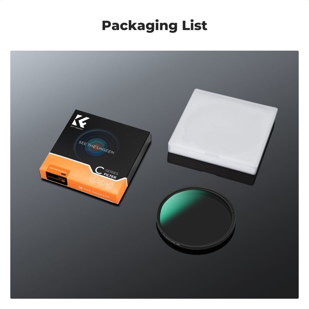 Der multifunktionale CPL + Black Mist 1/4 Filter von K&F Concept mit 46 mm Durchmesser vereint kreative Streuung mit leistungsstarker Polarisation in einem einzigen schlanken, präzisionsgefertigten Zubehörteil. Er wurde mit japanischem optischem Glas und mehrschichtigen Beschichtungen entwickelt und sorgt für traumhafte Kinoeffekte, reduziert Reflexionen, verbessert den Kontrast des Himmels und schützt vor Kratzern und Verschmutzungen – perfekt für Fotografen und Videografen, die sowohl Stil als auch Klarheit suchen.
