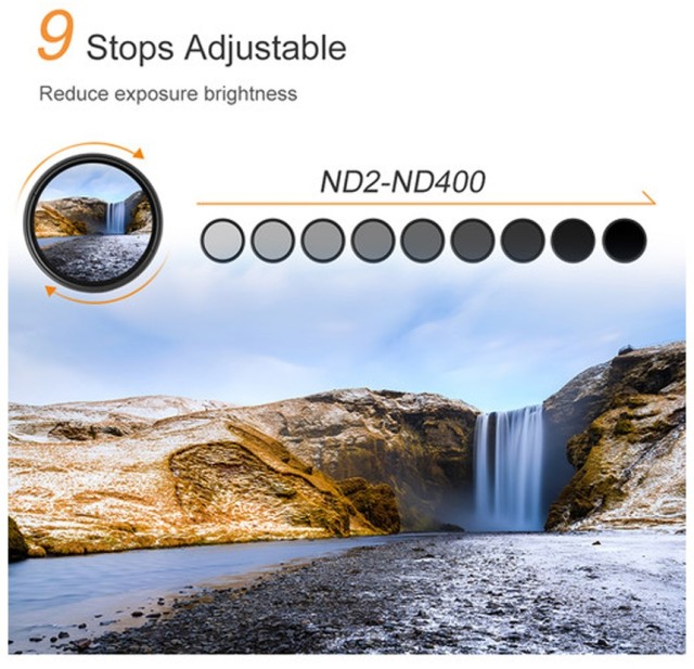 Der K&F CONCEPT 46 mm True Color Variable ND Filter (ND2–ND400) ist ein ultradünner, einstellbarer Neutraldichtefilter für präzise Lichtsteuerung. Er besteht aus hochwertigem optischem Glas und verfügt über eine Antireflexbeschichtung. Damit sorgt er für naturgetreue Farben und gleichmäßige Belichtungsanpassungen bei Foto- und Videoaufnah…