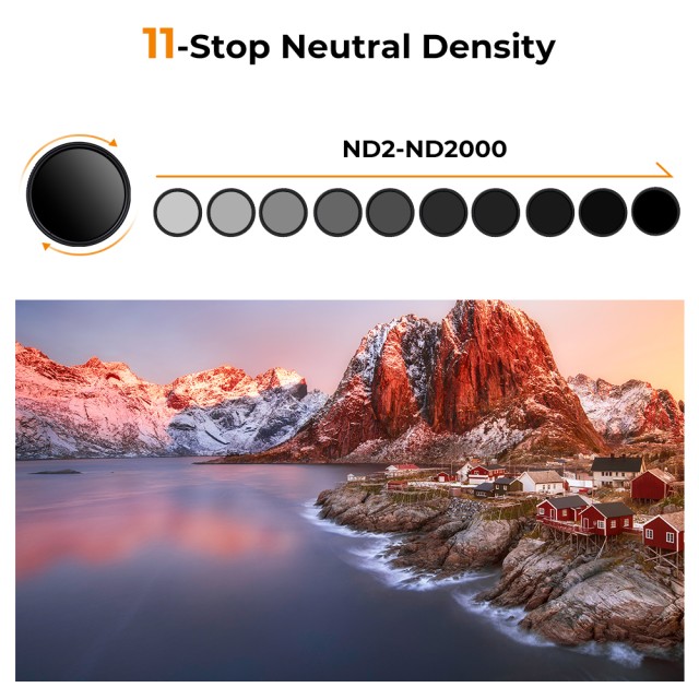 "【ND2-ND2000 Filter Funktion】Variable nd2000 ist es, die Menge an Licht durch das Objektiv zu reduzieren oder die Aufnahmezeit zu verlängern, wenn Sie eine große Blende verwenden, um an Orten mit starkem Licht zu fotografieren.