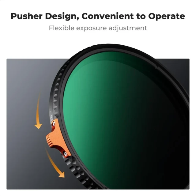Mit einer Reflexionsrate von nur 0,15 % unterdrückt der Filter Geisterbilder und Streulicht, insbesondere bei Gegenlicht oder starker Beleuchtung, und sorgt so für eine klare Bildqualität. Der gerändelte Rahmen ist wie ein Druckhebel gestaltet und ermöglicht eine präzise Einstellung. Jede Stufe von ND2 bis ND400 ist deutlich gekennzeichnet, sodass eine gleichmäßige 360°-Drehung möglich ist, die sich ideal für Foto- und Videoaufnahmen eignet.
