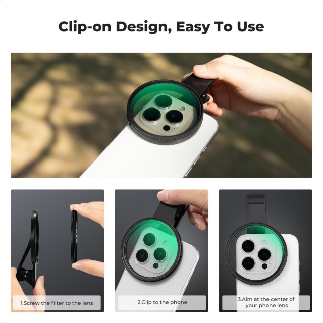 67mm Clip-on CPL&Black Mist 1/4 2-in-1 Phone Camera Lens Filter Kit Anwendbar für alle Mobiltelefonmodelle.