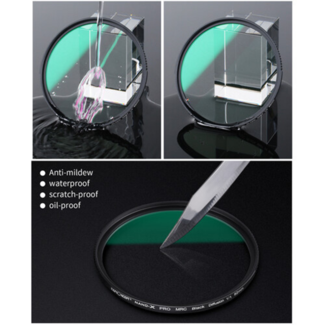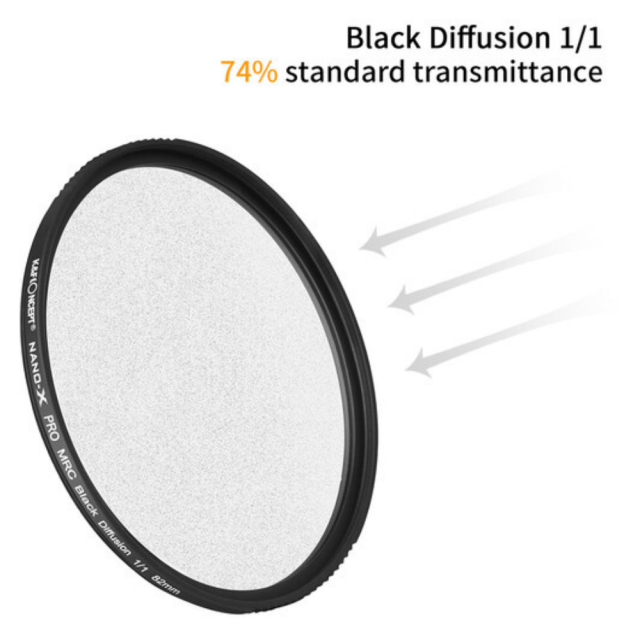 Erzeugen Sie einen verträumten Effekt in Ihren Bildern mit diesem Nano-X Black Mist Filter 1/2 von K&F Concept. Das Design des schwarzen Nebels hat eine Stärke von 1/2, die dazu beiträgt, Haut in Porträts weicher zu machen und Halo-Effekte um Lichter herum zu erzeugen. Er hat außerdem eine hohe Lichtdurchlässigkeit mit minimalen Auswirkungen auf die Belichtung.