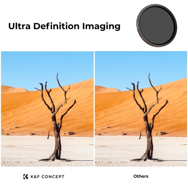 2. Der ND4-ND32-Neutraldichtefilter ermöglicht eine einstellbare Lichtreduzierung in 4 Stufen. Die Intensität des Neutraldichtefilters kann jederzeit je nach Bedarf eingestellt werden, um sich an unterschiedliche Lichtverhältnisse anzupassen.