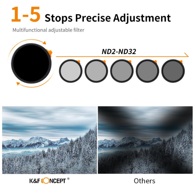 Ein Filter hat die ND & Balck Diffusion 1/4 Effekt-Filter-Funktionen, es kann nicht nur die Menge des Lichts in das Objektiv über anpassen (1-5 Stufen), sondern schafft auch filmische Traum-Effekt für Fotos und Videos.