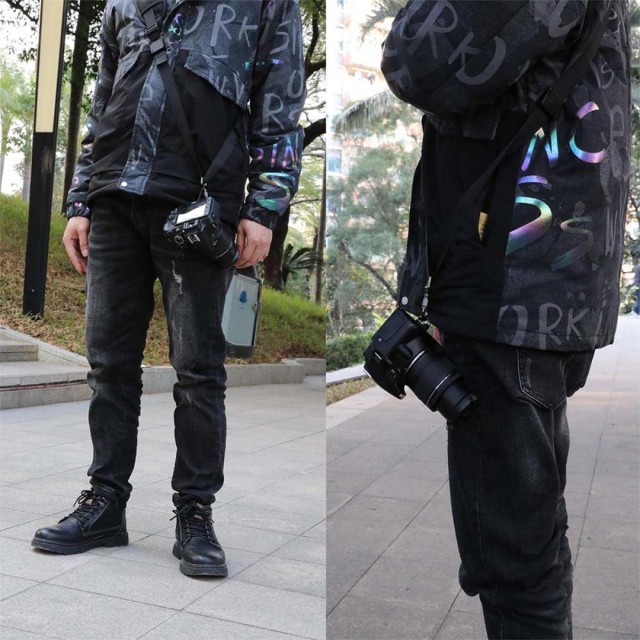 - * Der Kamera-Schultergurt kann schnell verstellt werden, und der Schultergurt lässt sich flexibel an die schnell montierte Kamera anpassen