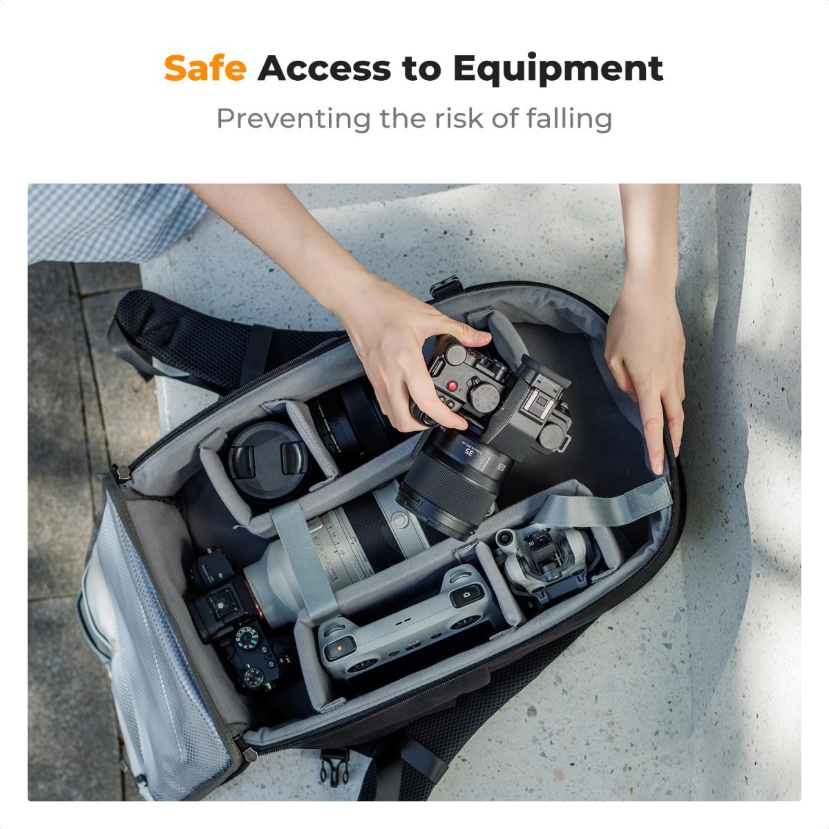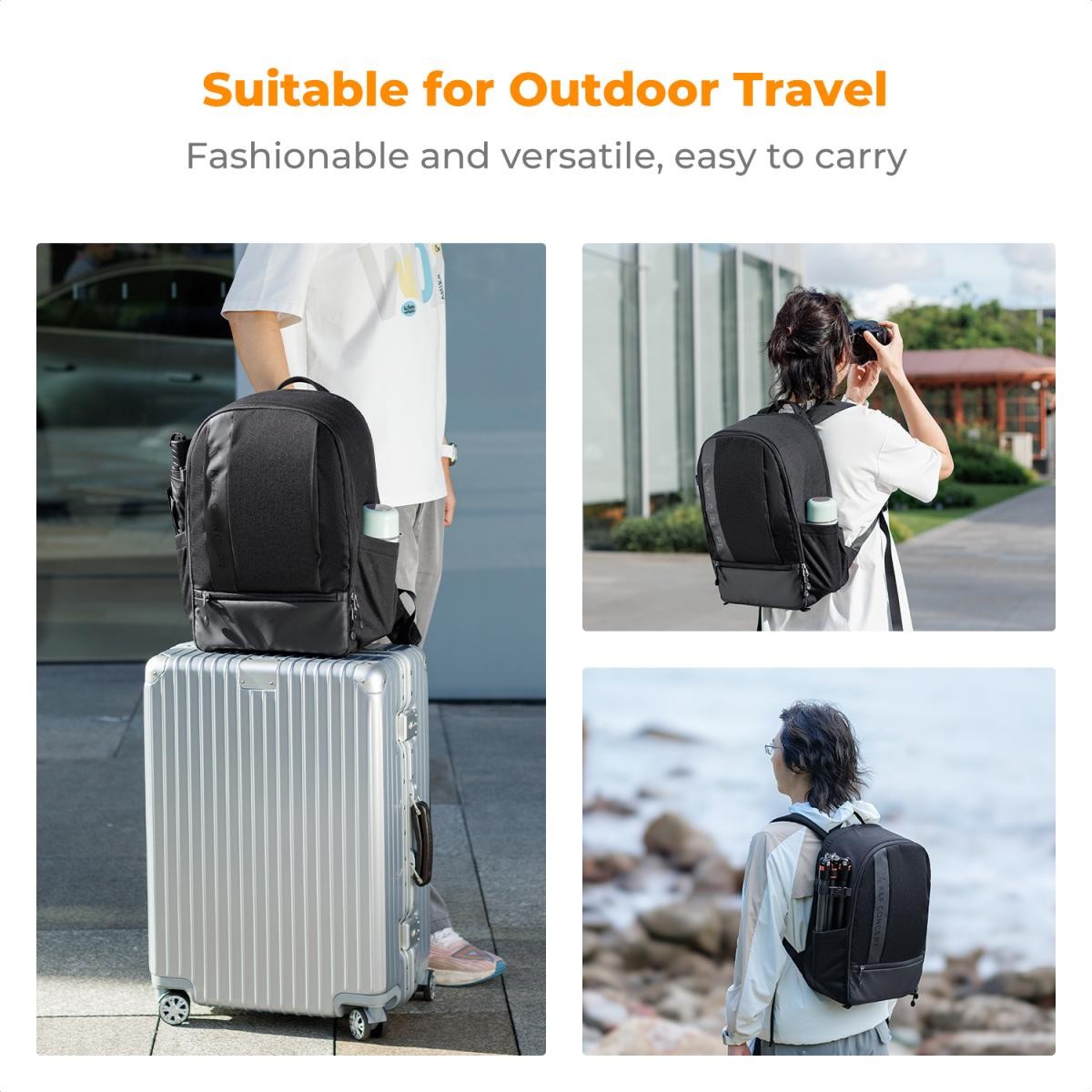 Der K&F CONCEPT Backpack 18L Nature Wander 04 ist ideal für Reisen, um Stativ, Kamera und Objektive zu verstauen, und verfügt über ein Fach für einen Laptop und eine Regenhülle.