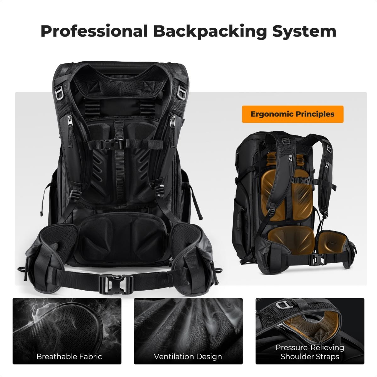 - * 【Ergonomische Rückenstütze und verstellbare Gurte】Mit einem 3-stufig verstellbaren Schultergurtsystem für verschiedene Körperformen. Die gepolsterte Rückwand und das atmungsaktive Netzgewebe bieten höchsten Komfort für lange Drehtage oder Outdoor-Abenteuer.