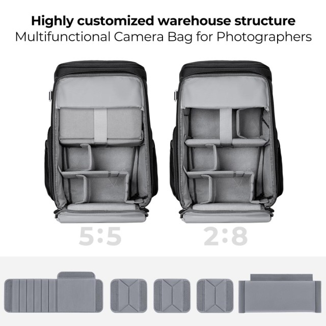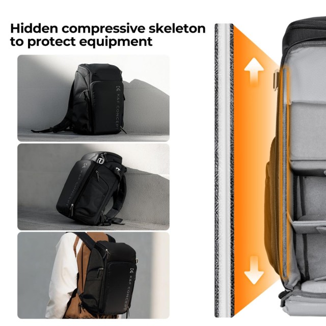 Der Fotorucksack von K&F Concept verfügt über ein vielseitiges "Magic Bin Design" für anpassbares Platzangebot, das ihn für verschiedene Fotoszenarien geeignet macht. Mit stabiler interner Unterstützung, Kapazitätserweiterung, Zugang von oben und von der Seite und einem aufgehängten Computerfach bietet er Sicherheit und Komfort für Fotografen, insbesondere für diejenigen, die Outdoor- und Porträtfotografie betreiben.
