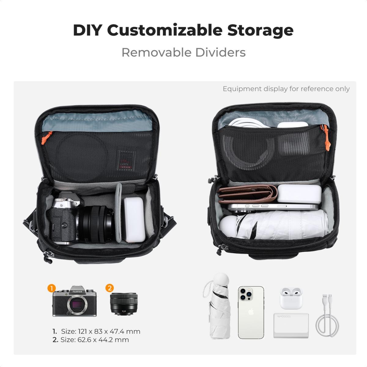Die perfekte kompakte Tasche für Fotografen auf Reisen. Diese leichte Umhängetasche (nur 0,6 kg) wurde speziell für 1 Kameragehäuse und 1 Objektiv entwickelt und eignet sich daher ideal für Straßenfotografie und den täglichen Gebrauch.