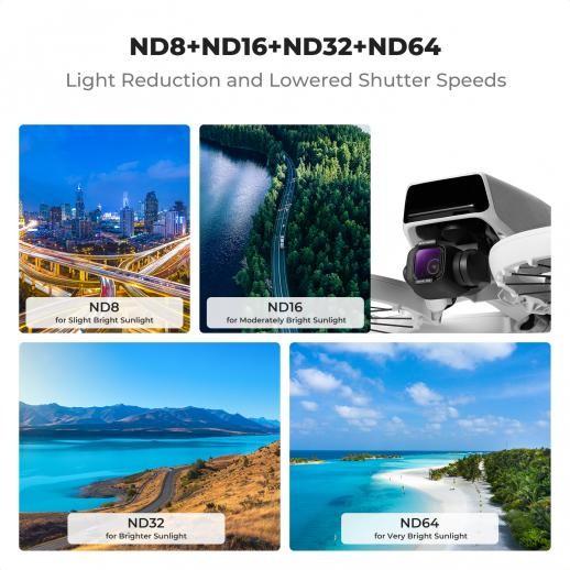 Verbessern Sie Ihre Luftaufnahmen und Action-Aufnahmen mit dem K&F Concept 4-Pack ND-Filter-Kit für DJI Flip, das ND8-, ND16-, ND32- und ND64-Filter enthält , die für eine ausgewogene Belichtung und kinoreife Bewegungsunschärfe unter verschiedenen Lichtverhältnissen ausgelegt sind.